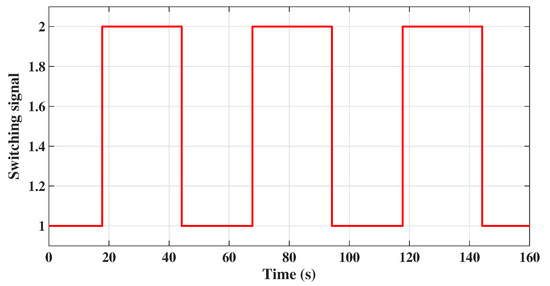 All these subsystems and the corresponding switching rules constitute the uncertain switched system as shown in Figure 1. In the controller design, the following parameter values were selected: , to bound the system uncertainties in system dynamics. The YALMIP [30] was used as the LMI solver to find suitable matrices . Finally, the control structure as shown in Figure 2 was built for simulation.