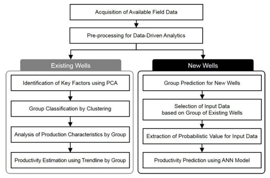 Section 1 covers the background and objectives of the study and describes the production-related attributes used for data-driven analytics in the study area. In Section 2, the analysis methods used in shale formations to predict production and recent research trends are explained. Section 3 covers the analytical methods used in the proposed workflow, and the results for existing and new wells obtained from the workflow are summarized in Section 4 and Section 5.