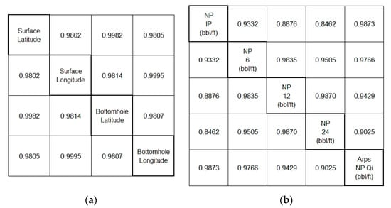 Highly correlated input attributes: (a) the attributes of the well location; (b) the attributes of production.
