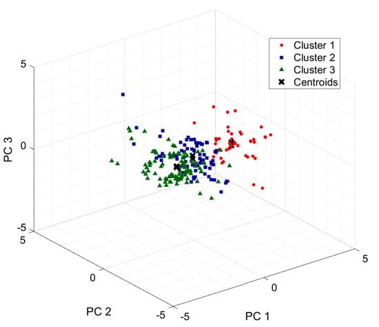 High-dimensional datasets have many correlating features and attributes. If these types of data are analyzed without characterization, problems such as overfitting and wasteful storage can occur. PCA is widely used in machine learning and pattern recognition techniques to solve these problems. Features can be extracted and selected by reducing the complexity and independence of the input parameters. PCA is a statistical procedure for generating relational variables for linearly uncorrelated vectors [9], and dimensionality reduction is possible with minimal data loss by analyzing multivariate data obtained for several response variables based on singular-value decomposition. This analysis technique has been applied to various fields for purposes such as history matching and seismic interpretation [45]. In addition, PCA provides new dimensions that can be used as the input variables for cluster analysis for efficient interpretation [46,47].