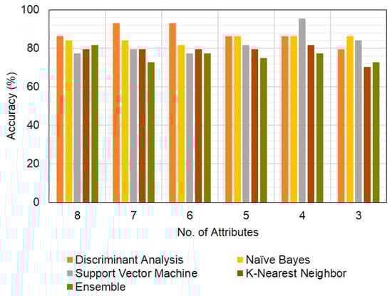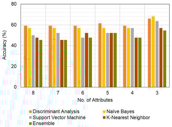 Classification results of group by machine learning methods for 3 attributes.