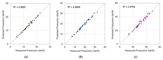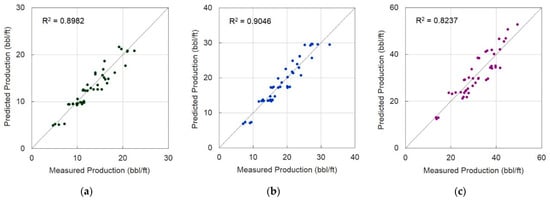 Bowie [12] quantified multicollinearity by calculating the variance inflation factor (VIF) from correlation coefficients for factors related to maturity, pad wells, and hydraulic fracture size, and applied simple and multi-linear regression. By applying these as well as ANN, the prediction accuracy of the ANN model was the highest, with a coefficient of determination of 0.93. Although an individual well exhibits satisfactory performance, there are many input factors required to use the ANN model, which is difficult to apply.