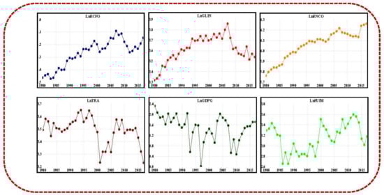 The ecological footprint is a special environmental sustainability indicator that is responsible for other natural areas essential for promoting economic development. These natural environments provide water reservoirs, woodland reserves, arable land, and the ecologically friendly air that can be achieved. Their abundance and sustainability could rely on the eutrophication capacity, acidification of the earth, as well as ecotoxicity of the atmosphere and ecosystems [,,]. In recent decades, depletion of the atmosphere has become a significant concern for academics and decision makers worldwide. This increasing challenge involves an unprecedented rate of greenhouse gas emissions, which have a strong effect on the environment, climate change, ecology, air quality, and environmental assets. In addition to human activities, this problem not only increases society’s reliance on natural resources, but it also exacerbates environmental resource scarcity on the planet. As a result, the ecological footprint gathers together the different services that are required to keep the people alive [,,].