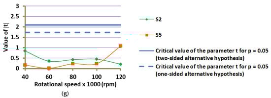 For all analyzed cases, in the Student’s t-test, a null hypothesis was formulated that the mean values of the measured parameters in each of the regimes S2 and S5 come from the population with the same mean as the corresponding parameter in the same regime for the DF case.