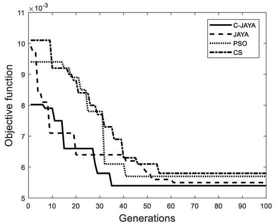 Figure 7 shows the convergence curve of the ITAE target function J versus the number of generations. It was found that the C-JAYA algorithm provides faster convergence than the traditional JAYA, PSO and CS techniques.