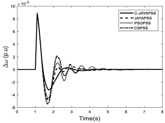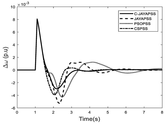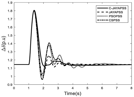 The effectiveness of the suggested C-JAYAPSS controller is compared to JAYAPSS, PSOPSS and CSPSS. It is notable that all simulations are conducted using the nonlinear power system model.