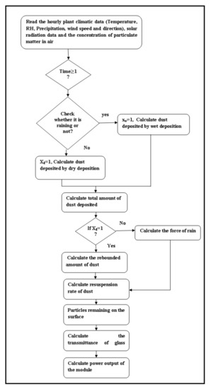 The total deposition due to dry and wet phenomena is represented in (13). After deposition on module surface, some portion of dust particles rebound immediately if the particles can overcome the particle-surface adhesion force. The velocity of the rebounded particle is determined by,