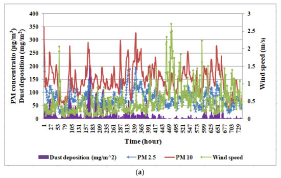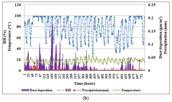 (a,b) Calculated deposited dust vis-â-vis the input weather data from 1 March 2021 to 31 March 2021.