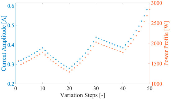 The first result is simply aimed at emphasizing the usefulness of a PMU in the load profile assessment and recording. For this purpose, Figure 4 shows the comparison between the power variation of the load and the current being measured by the PMU (in one of the treated cases). Consequently, the current-based DMS would introduce benefits for all the load forecasting and load profile generation algorithms that typically use data with time intervals around 15–45 min. On the contrary, the increasing amount of data—resulting from the higher reporting rate of a PMU—will emphasize a new problem that is being currently faced by DSOs and utilities: data storage. However, this problem is easily addressed with specific techniques that pre-process data and keep only the significant information.