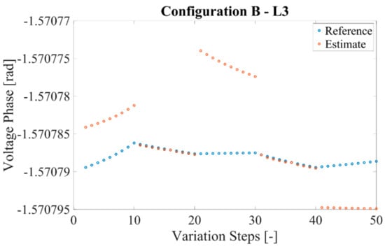 Reference and estimate of the voltage phase for configuration B and L3.