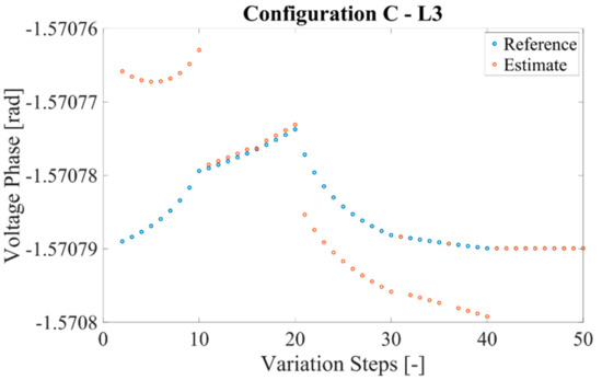Reference and estimate of the voltage phase for configuration C and L3.