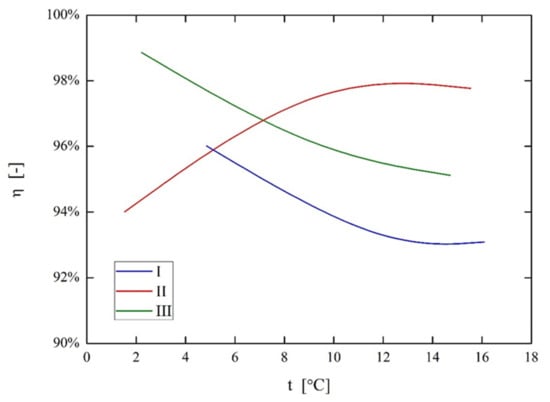 where thi—hot air stream inlet temperature, tho—hot air stream outlet temperature, and tci—cold air stream inlet temperature. A hundred percent recuperation efficiency would occur if the hot stream temperature would drop at the outlet to the level of cold stream inlet temperature.