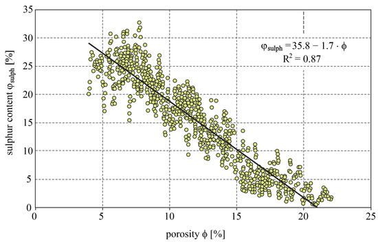 where: φsulph—sulphur content [%], ϕ—porosity [%].