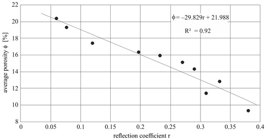 The reflection coefficients obtained in that manner correlate very well with the average porosity values determined from the borehole data (Figure 10). The relationship between average porosity and reflection coefficients (r) can be estimated by a linear equation: