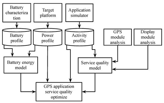 We consider the other major power consumers in these mobile systems, including the display. We finally construct an adaptive algorithm to maximize the battery lifetime by adjusting the GPS location precision and display brightness according to velocity variations during the trip. The remainder of this paper is organized as follows: We introduce the structure of the proposed method in Section 2. Then, we show that the proposed adaptive power and service quality control of the GPS improves the quality of service in Section 3. We present the formulated service quality optimization problem and its solution method in Section 4. The experimental results are provided in Section 5, and the conclusions in Section 6. Note that the detailed power estimation model on the Odroid-A platform is introduced in Appendix A and Appendix B.