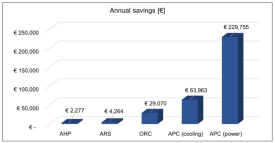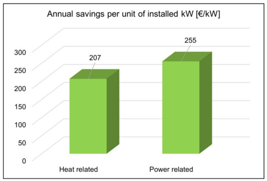 Solar water heaters achieved a slightly higher average water output temperature of 58 °C, but its exergy content is still very poor, even if the time variation in the environmental temperature were taken into account in the exergy calculations [82,83]. Therefore, the exploitation of this waste heat for power production or for feeding some small CHP technologies is not feasible in practice. In some cases, depending on the demand constraints, it could feed a space heating system [84].