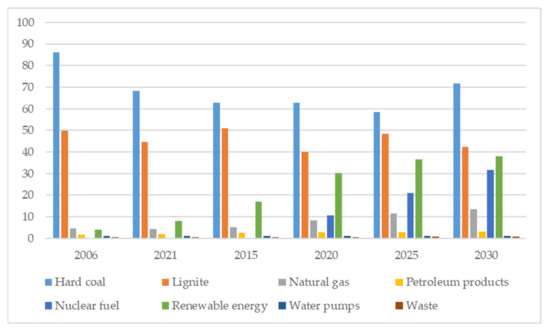 Poland’s specific and characteristic energy system has been the reason for adopting the following six interdependent directions in the Energy Policy until 2030: improving energy efficiency, increasing the security of fuel and energy supply, diversification of the energy generation structures by introduction of nuclear power, developing the use of renewable energy sources, including biofuels, developing competitive fuel and energy markets, and reduction of environmental impacts of the energy sector [24].