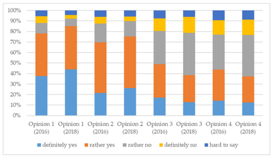 Support for the climate policy in Poland: Opinion 1: Poland should support the European Union in its efforts to reduce carbon dioxide emissions. Opinion 2: Poland should support actions to help countries that have been victims of climate change. Opinion 3: Poland is too poor to afford special programs aimed at combating climate change. Opinion 4: Poland’s contribution to climate change is so small that the actions taken by Poland will change nothing. Source: developed by the authors, based on Reference [35].