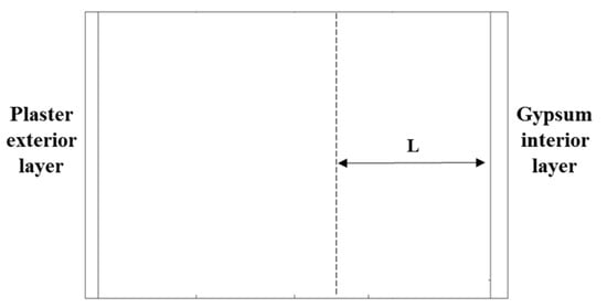 Numerical simulations allowed the extension of the experimental results [31] by comparing the performance of hempcrete and three design options of hempcrete-phase change material (HPCM) wall assemblies under different control strategies. Figure 1 illustrates the wall model developed in ANSYS Design Modeler (ANSYS Inc., Canonsburg, PA, USA) and simulated design options, including (1) a wall with 30 cm of hempcrete infill, (2) a wall with 10 cm of HPCM and 20 cm of hempcrete infill (HPCM10), (3) a wall with 20 cm of HPCM and 10 cm hempcrete infill (HPCM20), and (4) a wall with 30 cm of HPCM infill (HPCM30). Furthermore, measurement points at (X = 0, 0.5 L, L), where L is 10 cm for HPCM10, 20 cm for HPCM20, and 30 cm for HPCM30 (see Figure 1), allowed insight into the wall temperatures and the effectiveness of integrated phase change materials at different wall thicknesses.