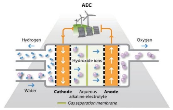 - Buttler, A.; Spliethoff, H. Current status of water electrolysis for water storage, grid balancing and sector coupling via power-to-gas and power to liquids. A review. Renew. Sustain. Energy Rev. 2018, 82, 2440–2454. [Google Scholar] [CrossRef]
