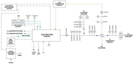 3.2. Hydrogen Production and Storage Plant Overall Characterisation