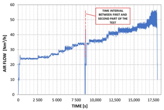 3.2.3. Test Results: Booster Hydrogen and Driving-Air Flow Rate Variation with Time and Booster Specific Energy Consumption