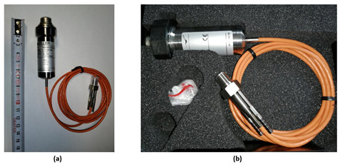 The pressure sensors: (a) Keller M8coolHB, (b) Kistler 4049A10.