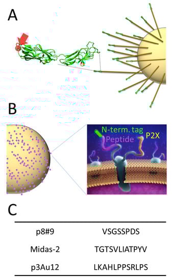 - Causa, F.; Della Moglie, R.; Iaccino, E.; Mimmi, S.; Marasco, D.; Scognamiglio, P.L.; Battista, E.; Palmieri, C.; Cosenza, C.; Sanguigno, L.; et al. Evolutionary screening and adsorption behavior of engineered M13 bacteriophage and derived dodecapeptide for selective decoration of gold interfaces. J. Colloid Interface Sci. 2013, 389, 220–229. [Google Scholar] [CrossRef]