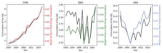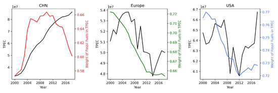 Innovations and exploitation of new energy resources have been unevenly introduced and implemented among the different countries. While many developed countries have been deploying clean-energy resources and reducing final energy consumption, fast-growing developing countries have been increasing their energy consumption, importing increasing volumes of energy. Over the past two decades, the European countries have reduced their consumption by an average of 5% [3]. In the meantime, the leading Asian economy, Japan, has decreased its energy demand by about 15%. Canada has led the transition, reducing its energy intensity by almost 20%, whereas the United States has managed to decouple its energy consumption from GDP and has held its energy demand fairly flat [4]. In contrast, primary energy use in China and central Africa has almost tripled, and, in India, eastern Africa, and the Middle East, primary energy use has more than doubled, pushing global energy use to a 40% increase. Only partially satisfied by the increase in the renewable energy supply, the growing energy demand brings new disturbances to the status quo of fossil fuel trade [5].