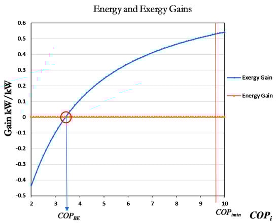 In this respect, a heat pump with COP = 5 destroys exergy due to the unit exergy mismatch between electric power (0.95 kW/kW) and thermal peaking power between 35 °C (308 K) and 65 °C (338 K):
