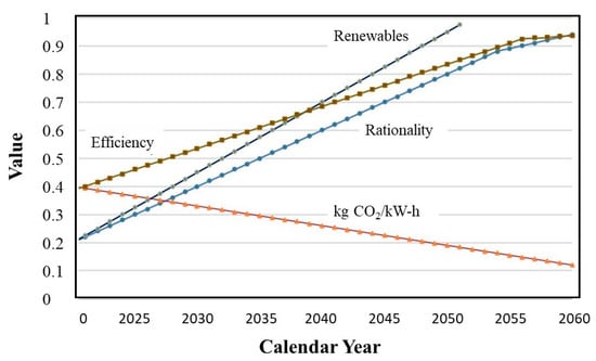 This relationship was formulated with the principles presented earlier by Kilkis, B. [,]. This formulation is given in Equation (11) and shown in Figure 7.