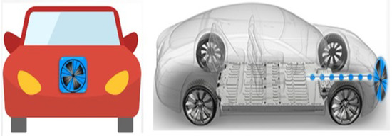 Another attempt to make a vehicle-mounted wind turbine system was made in [20] where the authors proposed to mount a miniaturized windmill [21] on the back of a pickup truck but the design had a problem as it was not applicable to other types of vehicles [22,23]. Similarly, an energy-harvesting system was presented in [24] which exploits the motion of a moving vehicle’s suspension. This system addresses the issues of low energy density, vibration dissipation, and lower energy-harvesting efficiency in current technology. The energy conversion components were introduced with inertial mass and an applied force to establish a dual-mass 2-DOF (degree of freedom) suspension dynamics model. Extending the similar lines, [25] demonstrated that the maximum power harvested by a vehicle suspension system can reach 738 W and is affected by road roughness.