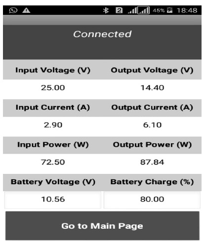 In a research study where something is being measured or calculated, there is a need to display it. As in this research article, the data were displayed in LCD using Arduino. Still, there was a need to have a display that was user friendly. Hence, an Android App was developed using the MIT App Inventor, which would display the input and output electrical parameters as well as the battery percentage. These data were sent to a mobile phone from Arduino via Bluetooth connection using a Bluetooth Module, HC-05. This objective of the research was performed after achieving all the milestones of the article and therefore brings this work to two different technologies: