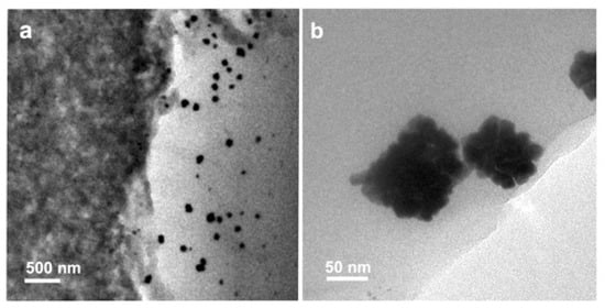 The STEM image of redeposition of Pt aggregates into the membrane in MEA-Pt/C, (a) disordered commercial Pt catalyst, (b) ordered commercial Pt catalyst. Reproduced from [197] IOP: 2020.