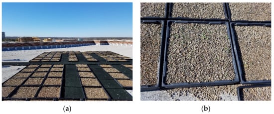 Extensive green roof system: (a) system overview; (b) individual grid.