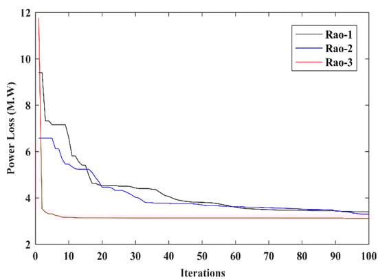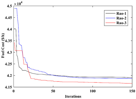 In various cases of these systems, the converged solution strictly followed all the lower and upper operating limits, which included reactive and active power generation output, line loading, and load bus voltage magnitudes. Under this condition, the value of the penalty was observed to be zero, which guarantees a feasible solution. It has been seen that Rao algorithms’ numerical results are better in most of the cases than the reported results as mentioned in recent literature.