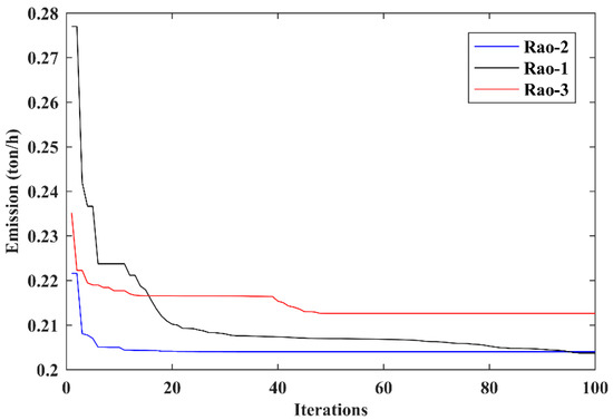 The system data along with control variables’ operating limits are taken from Reference [32] and given in Table 1. The emission and fuel cost coefficients of the IEEE 30-bus system are taken from [33]. For this system, 30 runs were performed using Rao algorithms to solve the different objective functions of the OPF problem and the best results out of 30 independent trials are given in this paper.