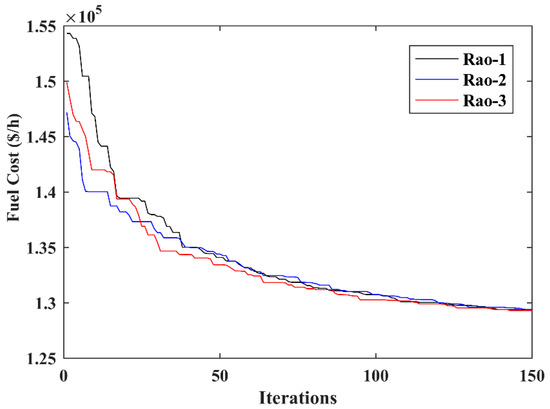 Performance of Rao-1, Rao-2, and Rao-3 is found to be competitive with one another as mentioned in [30]. In this paper, different topologies have been considered because the different topologies have different problem dimensions and complexities. The proposed Rao algorithms have been applied on three standard IEEE test systems, i.e., 30-bus, 57-bus, and 118-bus, which have 24 control variables, 33 control variables, and 130 control variables, respectively, to test the efficacy of the proposed algorithm for different problems dimensions.