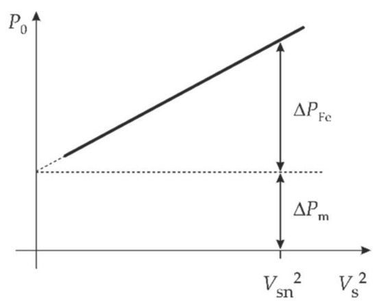 The power losses in the stator iron are determined using a graphical method for the rated stator voltage , as shown in Figure 4.