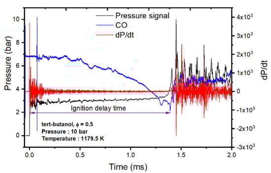 As the experimental time in shock-tube is limited to 2 ms a highly responsive technique such as TDLAS was applied in this study. A quantum cascade CO laser (QCL) working at wavenumber of 2059.91 cm−1 was used as an ignition marker in determining the onset of ignition which was not clearly identified from the pressure rise as seen in Figure 1.