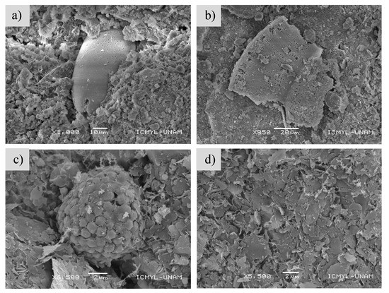 Additionally, four samples representative of each soil stratum (named S07, S08, S11, S20) were selected to study their microstructural and mineralogical characteristics. The mineralogical composition was obtained by X-ray diffraction (XRD) analysis using an EMPYREAN diffractometer (PANalytical, Almelo, The Netherlands) equipped with a fine focus Cu tube (CuKα radiation), nickel filter, and PIXCel 3D detector (PANalytical, Almelo, The Netherlands) operating at 40 mA and 45 kV. For bulk powder analyses, the samples were grounded and homogenized using a pestle and agate mortar to <75 µm. Measurements were taken over a 2θ angular range from 5 to 75° with a step scan of 0.003° and an integration time of 40 s per step. To properly identify the clay minerals, clay fractions (<2 µm) were examined using XRD in air-dried form, saturated with ethylene glycol, and after heating (550 °C). XRD patterns were analyzed with the HighScore version 4.5 program (PANalytical, Almelo, The Netherlands) using reference patterns from the International Center for Diffraction Data (ICDD) and the Inorganic Crystal Structure Database (ICSD). The microstructure of the sediments was observed using a high-resolution scanning electron microscope (JEOL JSM6360LV, Jeol, Tokyo, Japan). Images at different resolutions were taken from 1-cm3 specimens previously dried by the critical point method and coated with a gold layer.