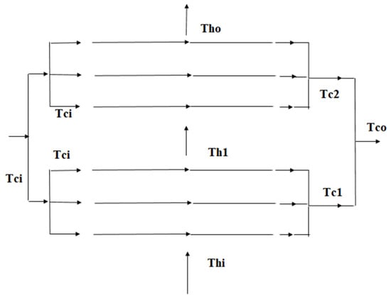 All references cited herein describe the thermal performance of a cross flow heat exchanger. A cross flow heat exchanger can operate in parallel flow configuration or counter flow configuration or can have pure cross flow circuiting as described in Figure 1. The performance of a pure cross flow heat exchanger is detailed in this work. In addition, correction factors were developed to describe partially mixed conditions in the tube side of a pure cross flow heat exchanger. It must be noted from [13] that a flow rate aberration at the heat exchanger’s inlet creates unsteady output, and the equipment requires a finite time to regain its steady state. In this work, it will be seen whether a partially mixed flow condition in the tube side will impact the steady state performance of the heat exchanger.
