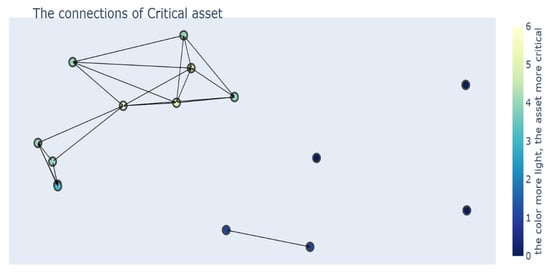 We do not need to rank any assets that are not critical. Moreover, the names of important assets are simulated by node and the number of connections between other nodes. Due to the increase in the number of connections, the more assets connected, the more critical. At the same time, they are at the greatest risk of network attacks because the attacker wants to achieve the goal of attacking an asset to paralyse the entire system. Therefore, those assets that have more connections with other assets will be the first targets of attackers.