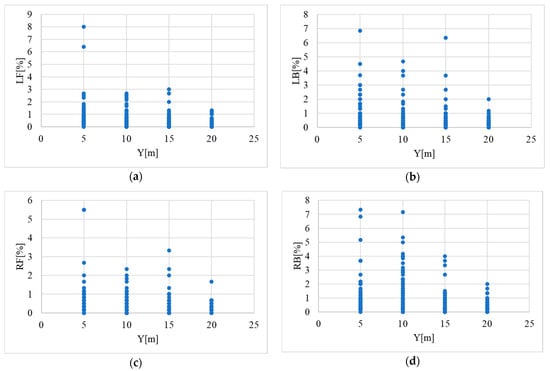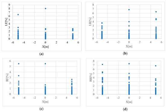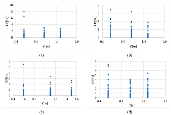 Table 4 shows statistical values of registered LF, RF, LB, and RB values. Their averages are less than 1% and the maximum values don’t exceed 8%. In each case, the standard deviation is greater than the arithmetic mean value but is less than twice the arithmetic mean value.