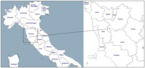 The golf project under study (designed by the golf course architect team Rainer Preißmann and Wilfried Moroder) is located in the municipality of Montaione, in the Tuscany region, in the province of Florence (Italy) (Figure 2). Golf is part of an 1100 ha tourist complex, which includes, among others, a 120-room hotel with heated swimming pool, a 30-room hotel, 1000 m2 spa with indoor and outdoor heated swimming pools, fitness center, restaurant complex, olive groves, and medieval castle. The golf project as part of the original masterplan has a total grass area of 111.21 ha and was divided into four main areas: Lake Course (51.11 ha), Mountain Course (43.53 ha), Practice Area (6.29 ha), and Short Course (10.28 ha). The division of individual areas into different parts of the golf course, used for playing and characterized by different levels of height and frequency of mowing, as well as a detailed map of the facility and the location of these zones are presented in Supplementary Materials S1. The operation of the Mountain Course, 9 holes of the Lake Course, and the Practice Area started in 2010. Reed mixes (Festuca arundinacea Schreb.) have been planted in fairways and semirough areas, fescue mixes have been planted in playable rough areas and meadow grass mixtures have been planted on hard rough areas. The base of golf course management is daily mowing of the greens, 3–4 times a week for tees, 1–2 times a week for fairways, semiroughs once a week and twice in the year for rough.