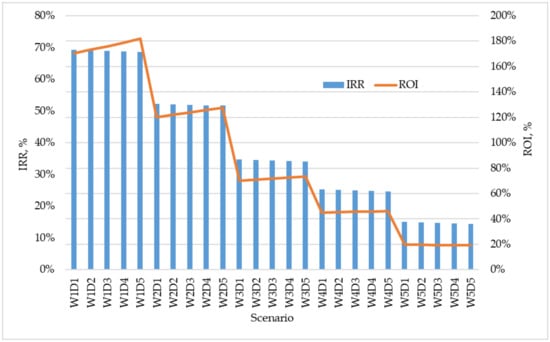 Return on Investment (ROI) is the ratio of the return on investment to the cost of the investment. Investments are often equated to the Weighted Average Cost of Capital (WACC) value [63]. When the ROI value is greater than or equal to the WACC, the investment is profitable. The ratio is calculated from the following formula: