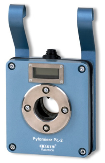 The last dust concentration measurements of PM10 dust were taken by the Pł-2/100 optical dust meter designed by ITI EMAG. The Pł-2 optical dust meter is an optical device operating on the basis of light scattering on dust particles. The physical principle of operation is based on the so-called Tyndall effect and consists in scattering light radiation of a constant wavelength in a colloidal solution, which in this case is a mixture of coal dust and air.