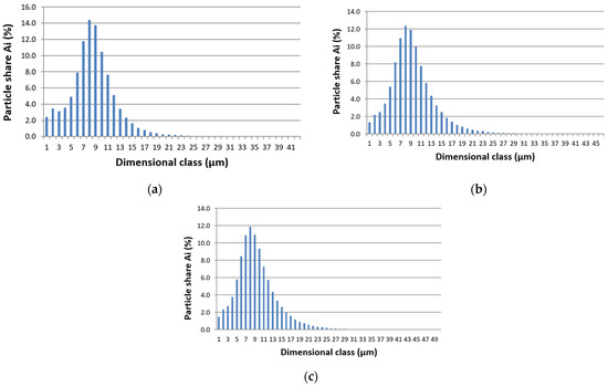 Sample result of the quantitative share of particles in a given class during measurements for the following measuring points: (a) nr 1; (b) nr 2; (c) nr 3.