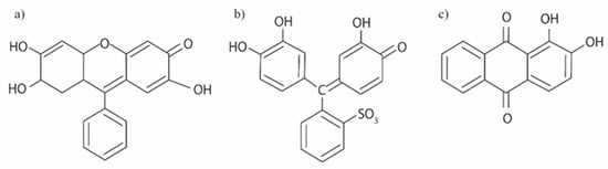This work focuses on three organic metal-free dyes (see Figure 1), namely phenylfluorone (PF), pyrocatechol violet (PCV) and alizarin (AL), and their application in dye cells as photosensitizers. Phenylfluorone (9-phenyl-3-fluorone, fluorone black) consists of fluorine with a phenyl group (Figure 1). Phenylfluorone and its derivatives are widely used as analytical agents in spectrophotometry and fluorescent spectrometry for the detection of metal ions [23]. Pyrocatechol violet is a sulfone phthalein dye, which is one of the organic reagents recommended for the studies of complexation as a ligand with metal ions such as indium and gallium toward the applications in nuclear medicine as well as in metal extraction and determination studies [24]. Alizarin (dihydroxyanthraquinone) is extracted from plant roots but can also be synthesized, and it is usually used as a textile red dye and staining agent in medicine. The application of alizarin dye and its derivatives in DSSCs was investigated theoretically [2,25].