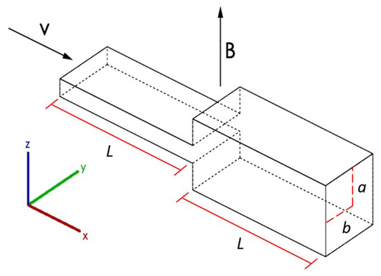 Parameter a stands for the typical length scale for the specific case of study (i.e., half-length of a duct along magnetic field direction), whereas is the electrical conductivity of the fluid. The flow is governed by two fundamental parameters: the Hartmann number () and the Stuart number, or interaction parameter (N).